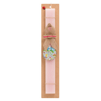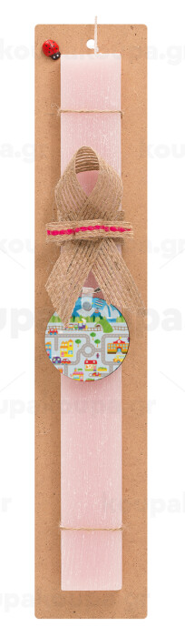 City road track maps, Πασχαλινή Λαμπάδα με ξύλινο μπρελόκ & κερί αρωματικό πλακέ (30cm) (ΡΟΖ)