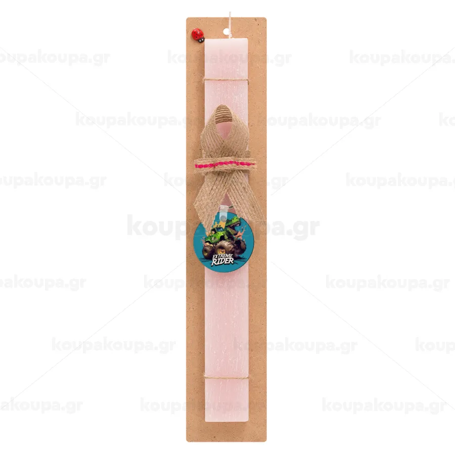Extreme rider Dyno, Πασχαλινή Λαμπάδα με ξύλινο μπρελόκ & κερί αρωματικό πλακέ (30cm) (ΡΟΖ)