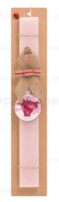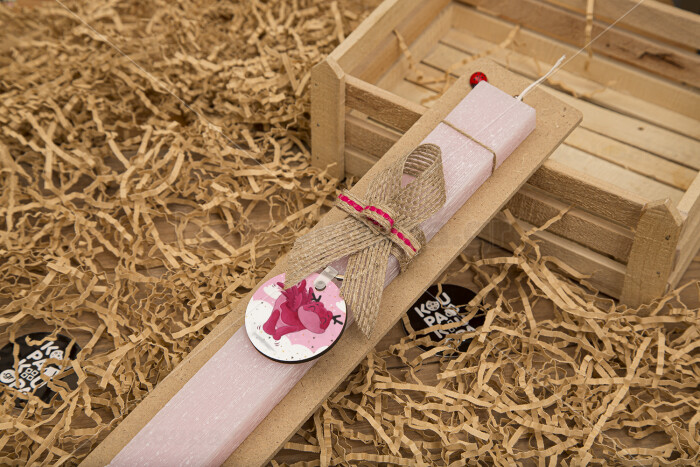 Flying Dyno, Πασχαλινή Λαμπάδα με ξύλινο μπρελόκ & κερί αρωματικό πλακέ (30cm) (ΡΟΖ)
