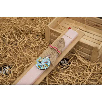 Hand drawing building truck, Πασχαλινή Λαμπάδα με ξύλινο μπρελόκ & κερί αρωματικό πλακέ (30cm) (ΡΟΖ)