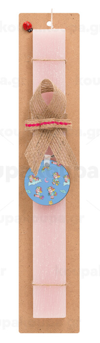 Unicorn pattern, Πασχαλινή Λαμπάδα με ξύλινο μπρελόκ & κερί αρωματικό πλακέ (30cm) (ΡΟΖ)