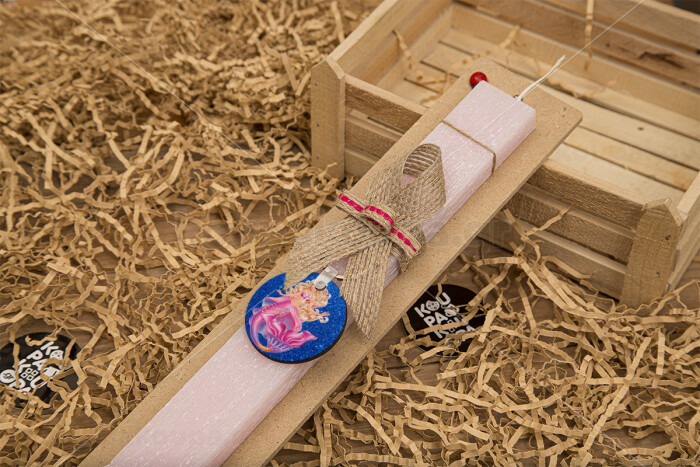 Barbie γοργόνα μπλε, Πασχαλινή Λαμπάδα με ξύλινο μπρελόκ & κερί αρωματικό πλακέ (30cm) (ΡΟΖ)