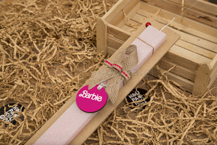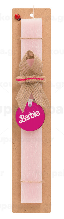 Barbie, Πασχαλινή Λαμπάδα με ξύλινο μπρελόκ & κερί αρωματικό πλακέ (30cm) (ΡΟΖ)