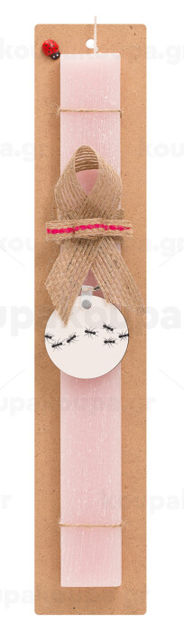 Μυρμήγκια, Πασχαλινή Λαμπάδα με ξύλινο μπρελόκ & κερί αρωματικό πλακέ (30cm) (ΡΟΖ)
