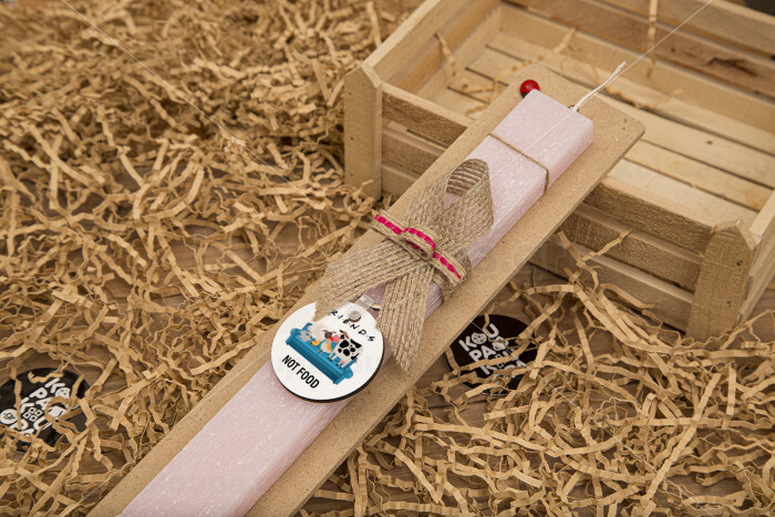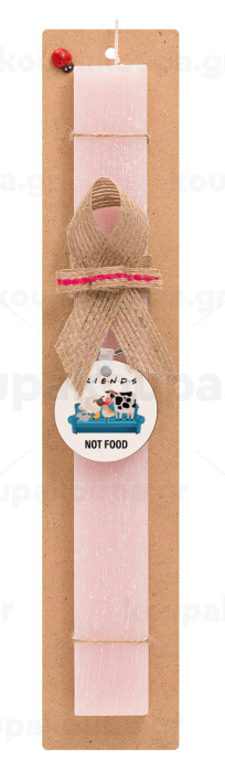 friends, not food, Πασχαλινή Λαμπάδα με ξύλινο μπρελόκ & κερί αρωματικό πλακέ (30cm) (ΡΟΖ)