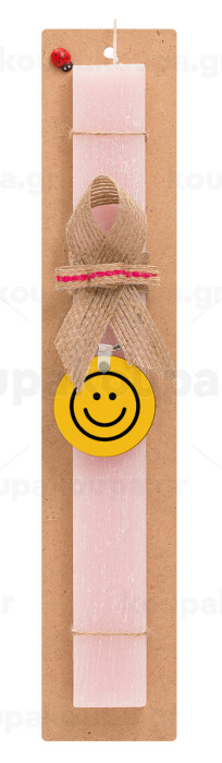 Smile classic, Πασχαλινή Λαμπάδα με ξύλινο μπρελόκ & κερί αρωματικό πλακέ (30cm) (ΡΟΖ)