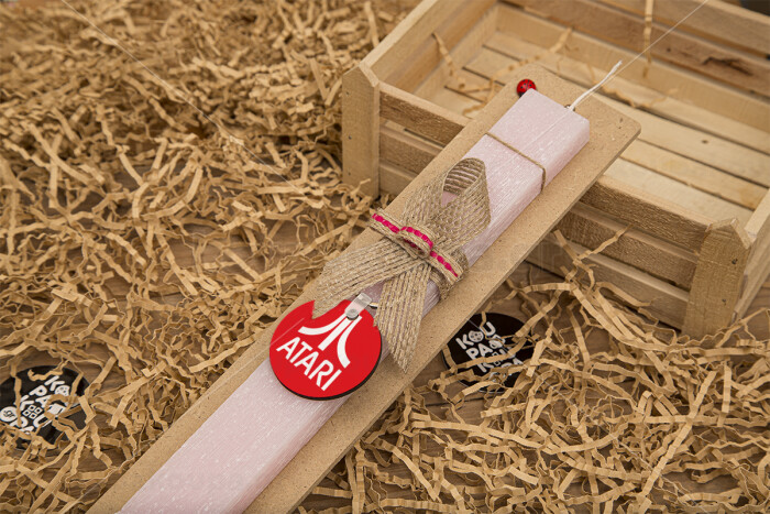 atari, Πασχαλινή Λαμπάδα με ξύλινο μπρελόκ & κερί αρωματικό πλακέ (30cm) (ΡΟΖ)