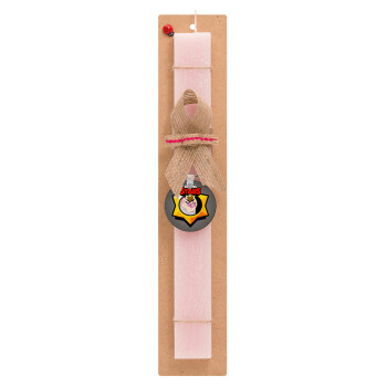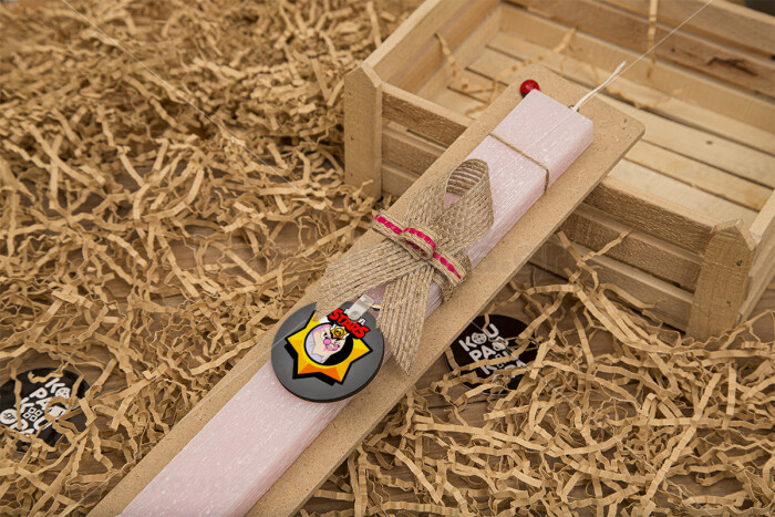 Brawl Stars Byron, Πασχαλινή Λαμπάδα με ξύλινο μπρελόκ & κερί αρωματικό πλακέ (30cm) (ΡΟΖ)