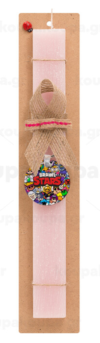 Brawl Stars characters, Πασχαλινή Λαμπάδα με ξύλινο μπρελόκ & κερί αρωματικό πλακέ (30cm) (ΡΟΖ)