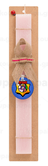 Brawl Stars El primo, Πασχαλινή Λαμπάδα με ξύλινο μπρελόκ & κερί αρωματικό πλακέ (30cm) (ΡΟΖ)