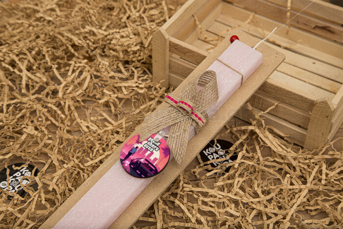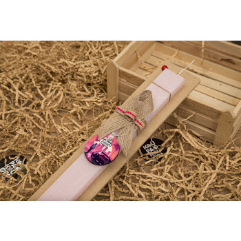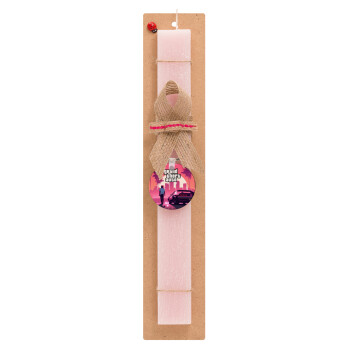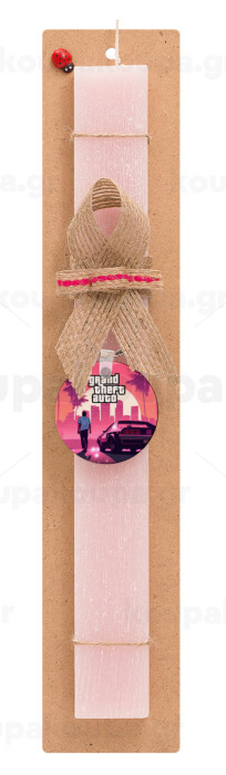 GTA (grand theft auto), Πασχαλινή Λαμπάδα με ξύλινο μπρελόκ & κερί αρωματικό πλακέ (30cm) (ΡΟΖ)