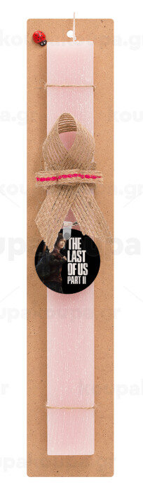 Last of us, Ellie, Πασχαλινή Λαμπάδα με ξύλινο μπρελόκ & κερί αρωματικό πλακέ (30cm) (ΡΟΖ)