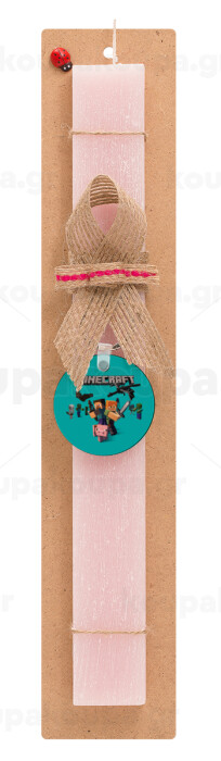 Minecraft Alex, Πασχαλινή Λαμπάδα με ξύλινο μπρελόκ & κερί αρωματικό πλακέ (30cm) (ΡΟΖ)