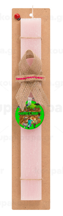Minecraft characters, Πασχαλινή Λαμπάδα με ξύλινο μπρελόκ & κερί αρωματικό πλακέ (30cm) (ΡΟΖ)
