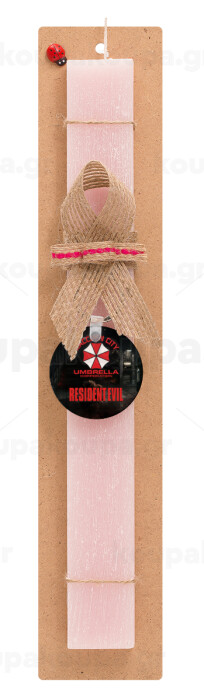 Resident Evil, Πασχαλινή Λαμπάδα με ξύλινο μπρελόκ & κερί αρωματικό πλακέ (30cm) (ΡΟΖ)