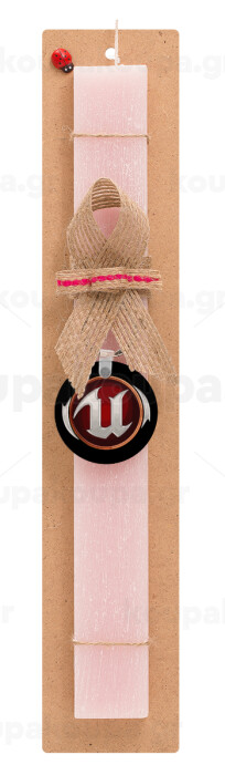 Unreal, Πασχαλινή Λαμπάδα με ξύλινο μπρελόκ & κερί αρωματικό πλακέ (30cm) (ΡΟΖ)