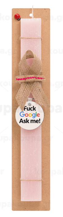 Fuck Google, Ask me!, Πασχαλινή Λαμπάδα με ξύλινο μπρελόκ & κερί αρωματικό πλακέ (30cm) (ΡΟΖ)