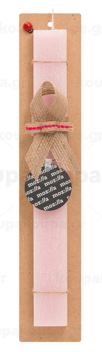 moz:lla, Πασχαλινή Λαμπάδα με ξύλινο μπρελόκ & κερί αρωματικό πλακέ (30cm) (ΡΟΖ)