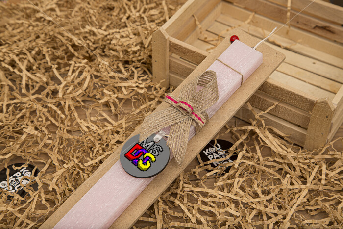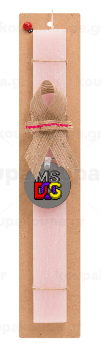 MsDos, Πασχαλινή Λαμπάδα με ξύλινο μπρελόκ & κερί αρωματικό πλακέ (30cm) (ΡΟΖ)