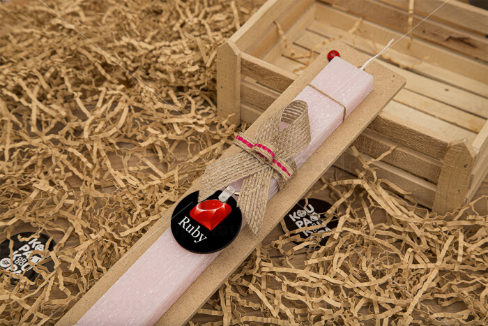 Ruby, Πασχαλινή Λαμπάδα με ξύλινο μπρελόκ & κερί αρωματικό πλακέ (30cm) (ΡΟΖ)