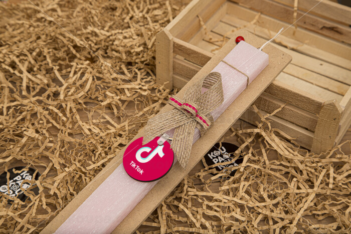 tik tok pink, Πασχαλινή Λαμπάδα με ξύλινο μπρελόκ & κερί αρωματικό πλακέ (30cm) (ΡΟΖ)