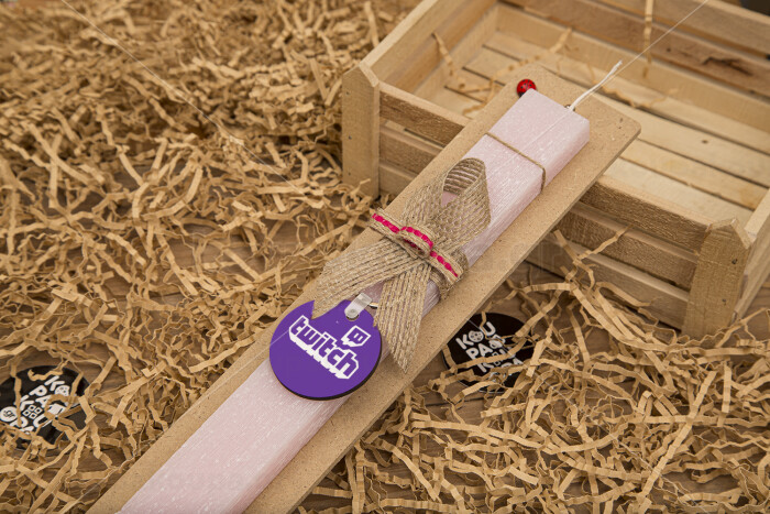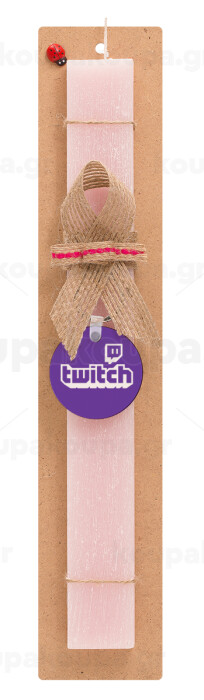 Twitch, Πασχαλινή Λαμπάδα με ξύλινο μπρελόκ & κερί αρωματικό πλακέ (30cm) (ΡΟΖ)