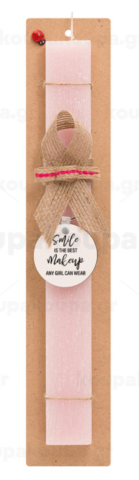 A slime is the best makeup any girl can wear, Πασχαλινή Λαμπάδα με ξύλινο μπρελόκ & κερί αρωματικό πλακέ (30cm) (ΡΟΖ)