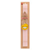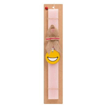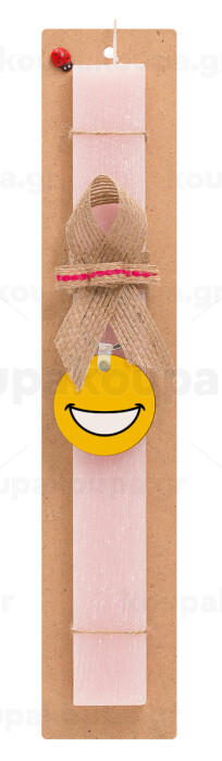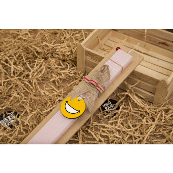 Χαμογέλα, Πασχαλινή Λαμπάδα με ξύλινο μπρελόκ & κερί αρωματικό πλακέ (30cm) (ΡΟΖ)