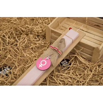 FEMALE, Πασχαλινή Λαμπάδα με ξύλινο μπρελόκ & κερί αρωματικό πλακέ (30cm) (ΡΟΖ)