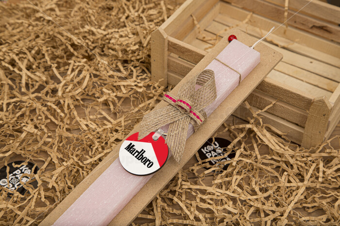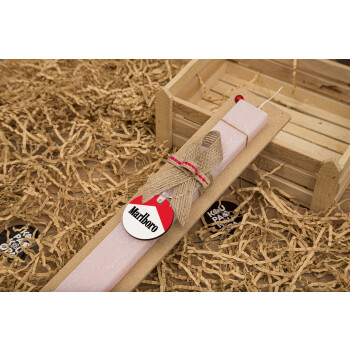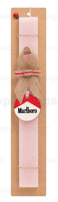 Marlboro, Πασχαλινή Λαμπάδα με ξύλινο μπρελόκ & κερί αρωματικό πλακέ (30cm) (ΡΟΖ)