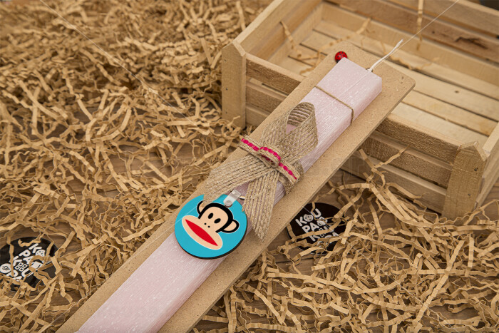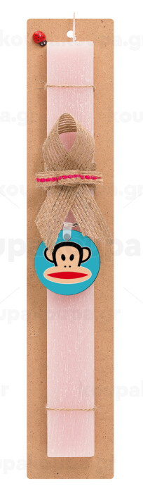 Monkey, Πασχαλινή Λαμπάδα με ξύλινο μπρελόκ & κερί αρωματικό πλακέ (30cm) (ΡΟΖ)