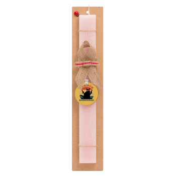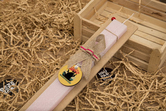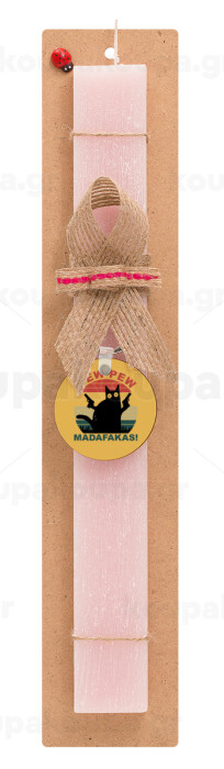 PEW PEW madafakas, Πασχαλινή Λαμπάδα με ξύλινο μπρελόκ & κερί αρωματικό πλακέ (30cm) (ΡΟΖ)
