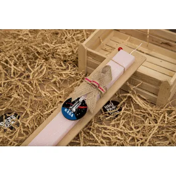 NASA Badge, Πασχαλινή Λαμπάδα με ξύλινο μπρελόκ & κερί αρωματικό πλακέ (30cm) (ΡΟΖ)