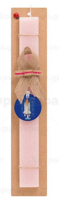 Nasa Space Shuttle, Πασχαλινή Λαμπάδα με ξύλινο μπρελόκ & κερί αρωματικό πλακέ (30cm) (ΡΟΖ)