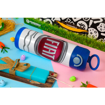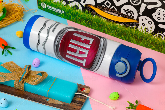 FIAT 500, Πασχαλινή Λαμπάδα με Παιδικό παγούρι θερμό, ανοξείδωτο, με καλαμάκι ασφαλείας, ΜΠΛΕ (500ml)