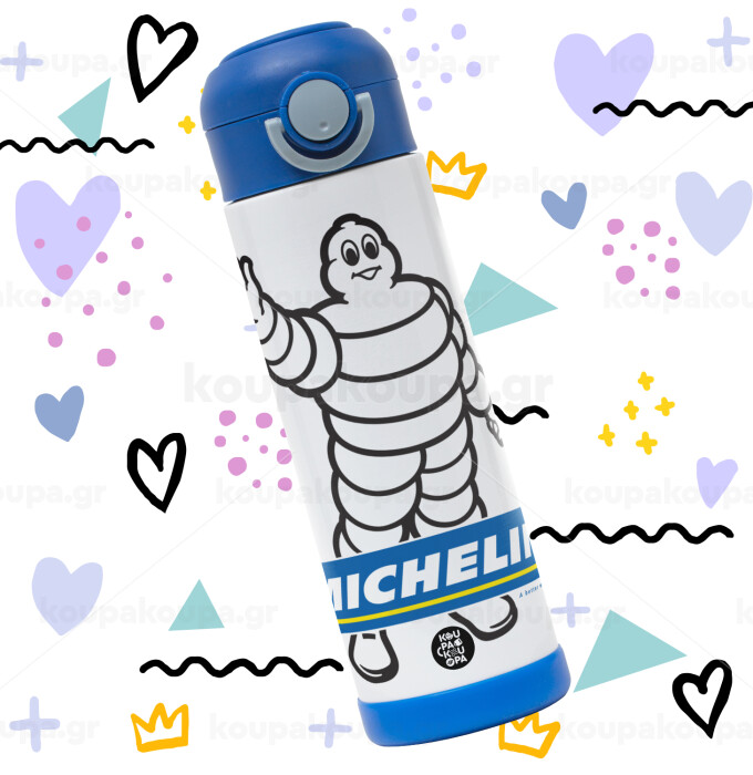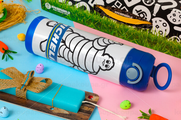 Michelin, Πασχαλινή Λαμπάδα με Παιδικό παγούρι θερμό, ανοξείδωτο, με καλαμάκι ασφαλείας, ΜΠΛΕ (500ml)