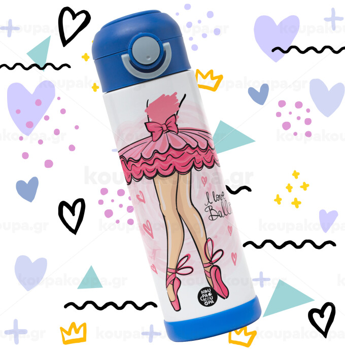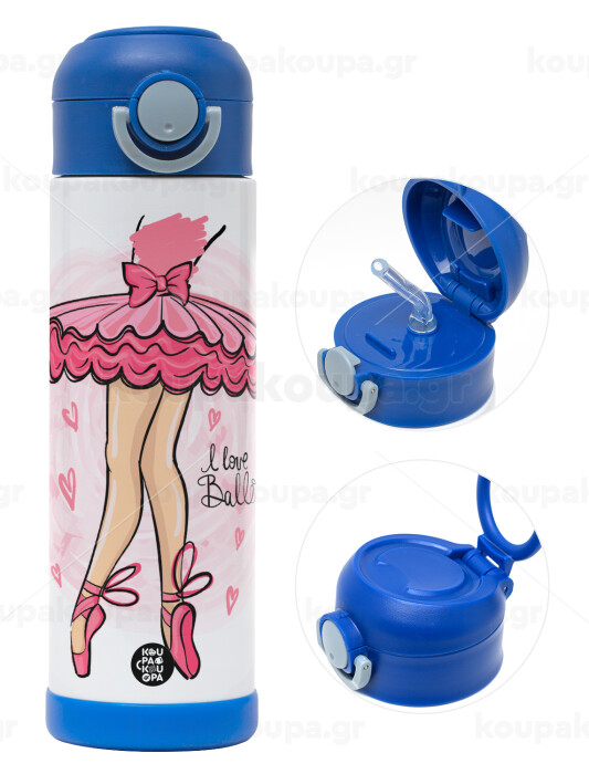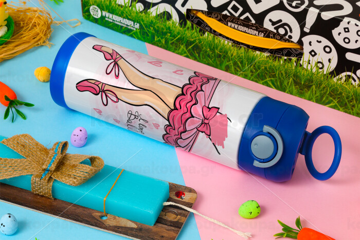 I Love Ballet, Πασχαλινή Λαμπάδα με Παιδικό παγούρι θερμό, ανοξείδωτο, με καλαμάκι ασφαλείας, ΜΠΛΕ (500ml)