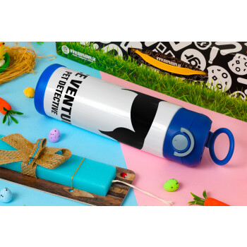Ace Ventura Pet Detective, Πασχαλινή Λαμπάδα με Παιδικό παγούρι θερμό, ανοξείδωτο, με καλαμάκι ασφαλείας, ΜΠΛΕ (500ml)