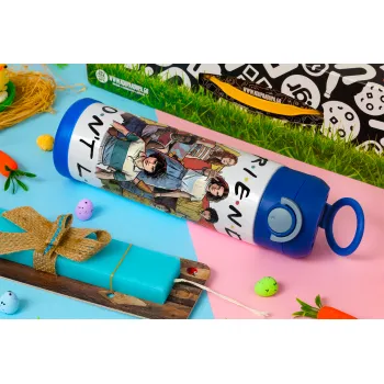 Friends Dont Lie, Stranger Things, Πασχαλινή Λαμπάδα με Παιδικό παγούρι θερμό, ανοξείδωτο, με καλαμάκι ασφαλείας, ΜΠΛΕ (500ml)
