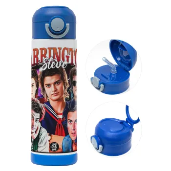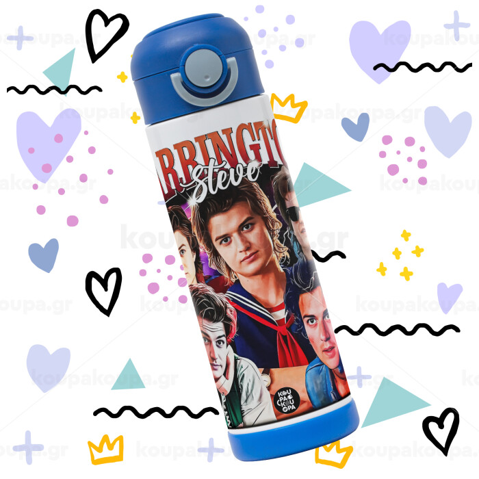 Steve Harrington, Stranger Things, Πασχαλινή Λαμπάδα με Παιδικό παγούρι θερμό, ανοξείδωτο, με καλαμάκι ασφαλείας, ΜΠΛΕ (500ml)