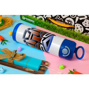 Transformers, Πασχαλινή Λαμπάδα με Παιδικό παγούρι θερμό, ανοξείδωτο, με καλαμάκι ασφαλείας, ΜΠΛΕ (500ml)