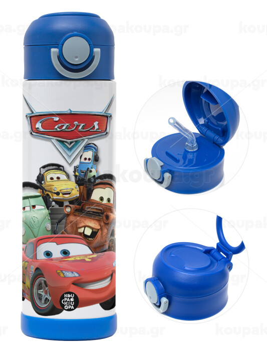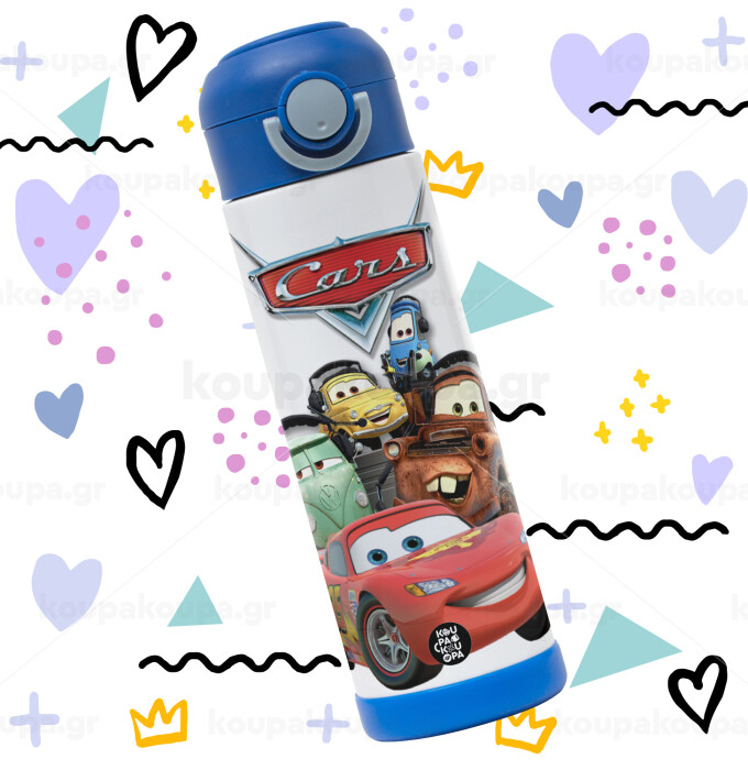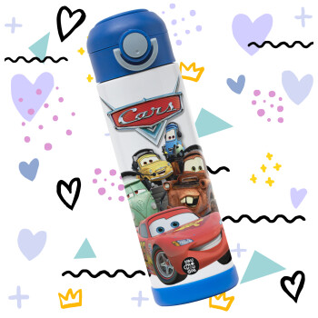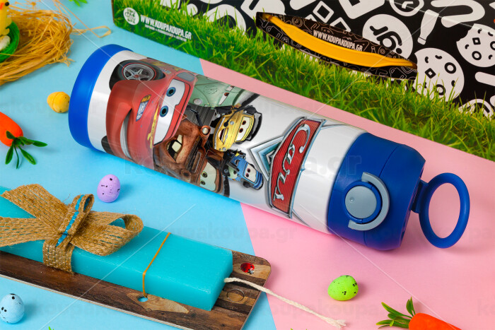 Αυτοκίνητα, Πασχαλινή Λαμπάδα με Παιδικό παγούρι θερμό, ανοξείδωτο, με καλαμάκι ασφαλείας, ΜΠΛΕ (500ml)