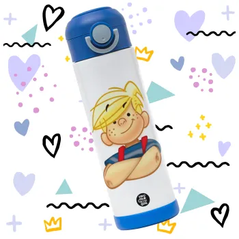 Ντένις ο τρομερός, Πασχαλινή Λαμπάδα με Παιδικό παγούρι θερμό, ανοξείδωτο, με καλαμάκι ασφαλείας, ΜΠΛΕ (500ml)