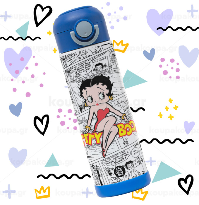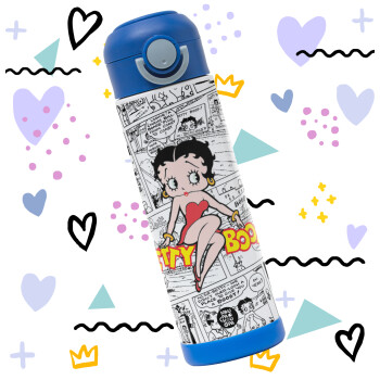 Betty Boop, Πασχαλινή Λαμπάδα με Παιδικό παγούρι θερμό, ανοξείδωτο, με καλαμάκι ασφαλείας, ΜΠΛΕ (500ml)