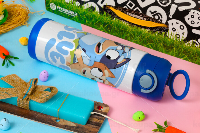 Μπλε, Πασχαλινή Λαμπάδα με Παιδικό παγούρι θερμό, ανοξείδωτο, με καλαμάκι ασφαλείας, ΜΠΛΕ (500ml)