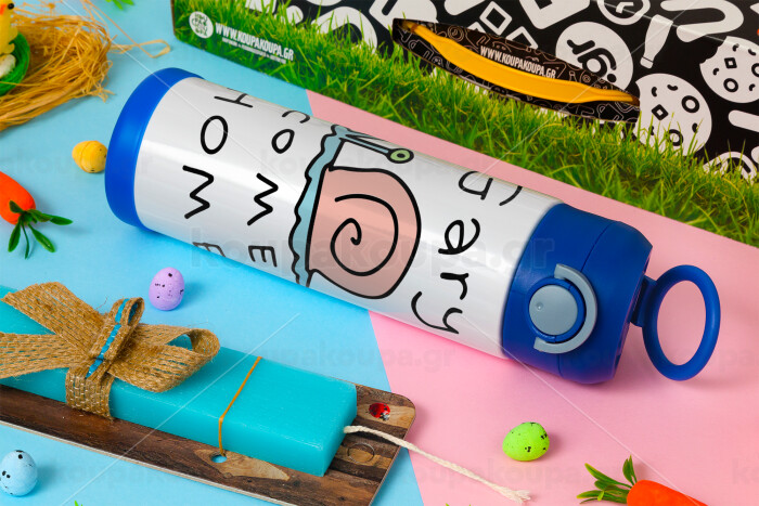 Gary come home, Πασχαλινή Λαμπάδα με Παιδικό παγούρι θερμό, ανοξείδωτο, με καλαμάκι ασφαλείας, ΜΠΛΕ (500ml)