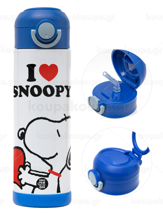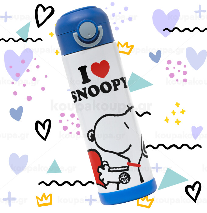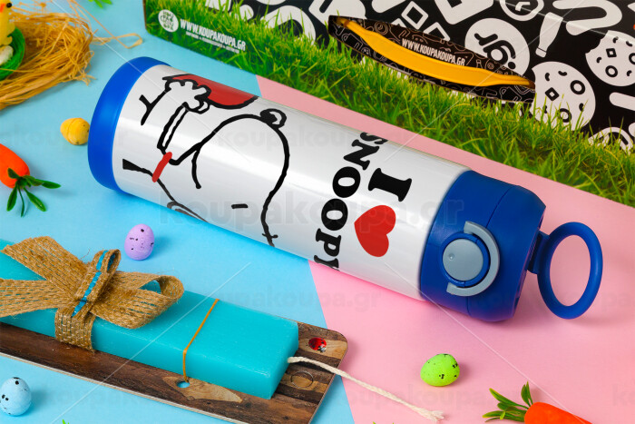 I LOVE SNOOPY, Πασχαλινή Λαμπάδα με Παιδικό παγούρι θερμό, ανοξείδωτο, με καλαμάκι ασφαλείας, ΜΠΛΕ (500ml)