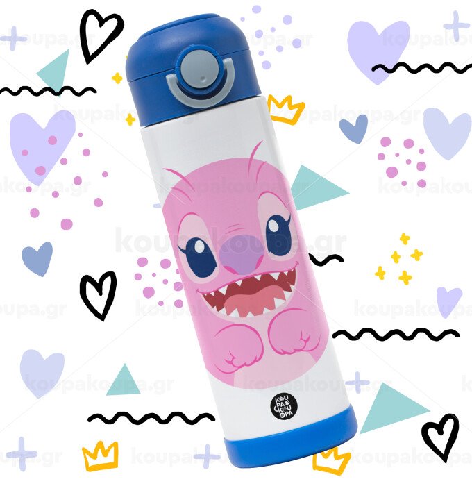 Lilo & Stitch Angel pink, Πασχαλινή Λαμπάδα με Παιδικό παγούρι θερμό, ανοξείδωτο, με καλαμάκι ασφαλείας, ΜΠΛΕ (500ml)