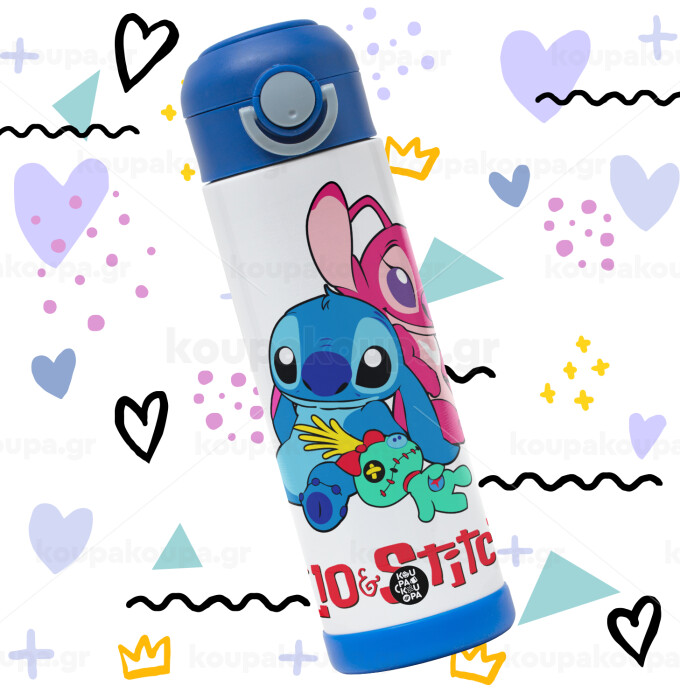 Lilo & Stitch, Πασχαλινή Λαμπάδα με Παιδικό παγούρι θερμό, ανοξείδωτο, με καλαμάκι ασφαλείας, ΜΠΛΕ (500ml)
