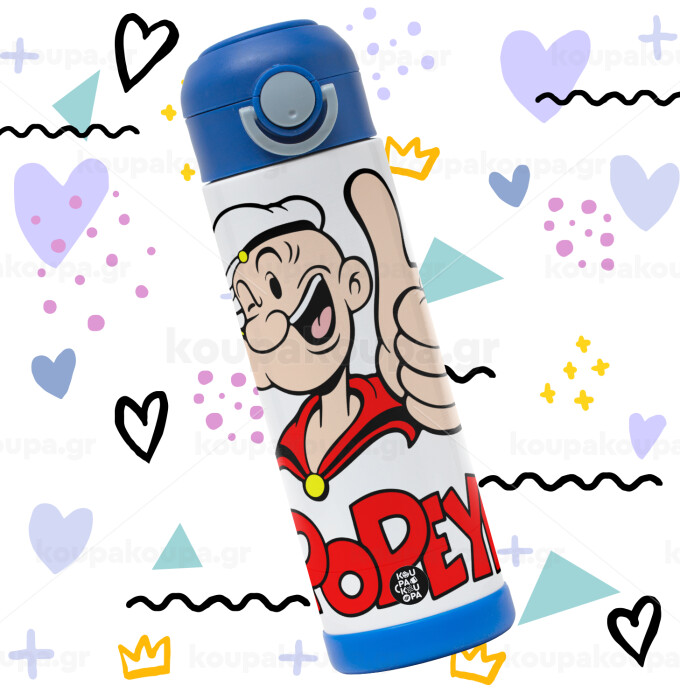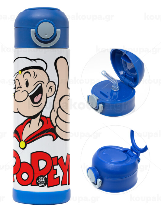 Popeye the sailor man, Πασχαλινή Λαμπάδα με Παιδικό παγούρι θερμό, ανοξείδωτο, με καλαμάκι ασφαλείας, ΜΠΛΕ (500ml)